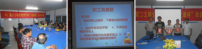 6月9日,普及安全生產(chǎn)知識及技能,組織所屬項目部開展“安康杯”知識競賽,參賽人員經(jīng)過筆試、激烈的搶答等環(huán)節(jié),最終板橋A地塊二期二標(biāo)段項目榮獲團體一等獎、新港龍庭項目榮獲團體二等獎、善水灣項目榮獲團體三等獎,此次競賽既普及了安全知識,又增強了團隊的凝聚力。同時工程公司對施工現(xiàn)場進行拉網(wǎng)式安全檢查,對危險性較大的分部分項工程進行專項檢查,排除安全隱患,防止事故的發(fā)生。