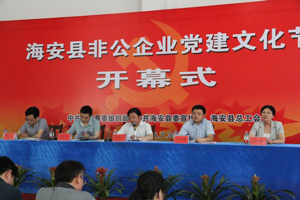 目前,我縣共有非公企業(yè)2998家,從業(yè)人員14.9萬人,非公企業(yè)黨組織總體組建率達(dá)98.6%。近年來,我縣不斷探索創(chuàng)新非公企業(yè)黨建文化工作,548家規(guī)模企業(yè)提煉形成獨特的企業(yè)精神,46家企業(yè)創(chuàng)辦內(nèi)刊,《中洋報》被評為省十佳企業(yè)期刊,《海迅之歌》被評為省十大企業(yè)金曲,并打造了海迅集團(tuán)“家”文化,鑫緣集團(tuán)“精品人品同在,誠信創(chuàng)新永恒”價值觀等一批黨建文化品牌。雙弘紡織黨支部被表彰為全國創(chuàng)先爭優(yōu)先進(jìn)基層黨組織,海安高新區(qū)等被表彰為省“四統(tǒng)籌一創(chuàng)爭”示范單位。