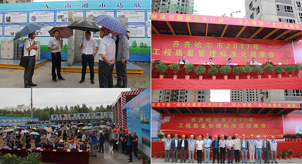 會(huì)后,參會(huì)人員現(xiàn)場(chǎng)觀摩了我公司承建的御園二期建設(shè)項(xiàng)目的樣板間、樣板件及內(nèi)業(yè)資料展示區(qū)。這也是該項(xiàng)目繼6月26日,齊市住建局開展“安全生產(chǎn)月、安全萬里行”暨“安全文明標(biāo)準(zhǔn)化施工觀摩會(huì)后的又一次現(xiàn)場(chǎng)管理示范展示。