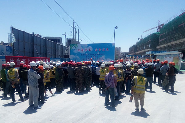 儀式上,君豪輕紡城項目部項目經(jīng)理雷遠明宣讀了《“安全生產(chǎn)月” 、“安全生產(chǎn)萬里行”活動》的倡議書和安排部署;生產(chǎn)經(jīng)理盛慶國針對當(dāng)前安全形勢、施工現(xiàn)場的安全隱患結(jié)合事故案例進行了教育。最后,工程公司經(jīng)理丁國東就“安全生產(chǎn)月”和“安全生產(chǎn)萬里行”活動提出具體要求,要求項目部全體人員迅速行動起來,積極抓好安全生產(chǎn)的各項工作,堅決杜絕生產(chǎn)安全事故的發(fā)生,確保全年安全生產(chǎn)目標(biāo)的順利完成。