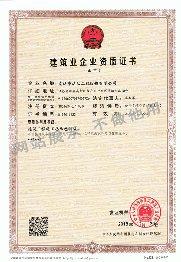 特級資質(zhì)的成功晉升,再次實(shí)現(xiàn)了達(dá)欣人的又一個(gè)夢想,標(biāo)志著達(dá)欣發(fā)展邁入了又一座新的里程碑。特級資質(zhì)企業(yè),可承接建筑各等級工程施工總承包、工程總承包和項(xiàng)目管理業(yè)務(wù),這為達(dá)欣集團(tuán)全力布局國內(nèi)市場、大力開拓海外市場拓寬了領(lǐng)域、增強(qiáng)了實(shí)力,為企業(yè)的發(fā)展必將產(chǎn)生積極而深遠(yuǎn)的影響。