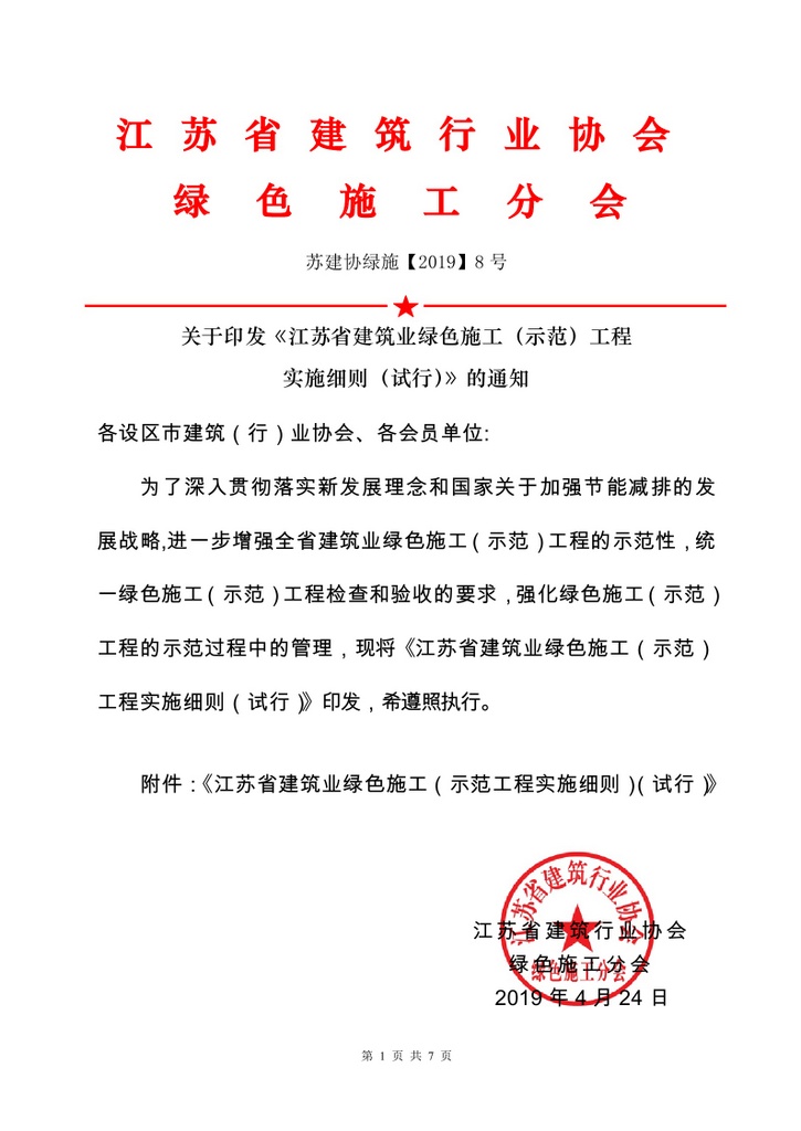 關于印發(fā)《江蘇省建筑業(yè)綠色施工(示范)工程實施細則(試行)》的通知