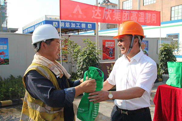在萬豪國際四期4#樓項目上,劉厚純書記對項目工程質(zhì)量的提升給與了充分肯定,并對項目負(fù)責(zé)人花忠春提出了高標(biāo)準(zhǔn)高要求把控質(zhì)量的建議。在為職工分發(fā)高溫慰問品中,他叮囑項目負(fù)責(zé)人要加強(qiáng)管理、科學(xué)安排一線職工的作息時間,做好防暑工作。