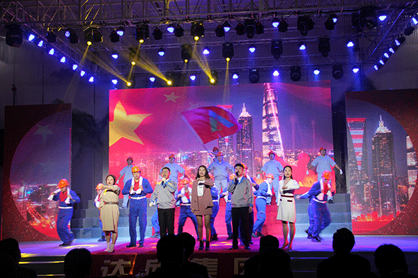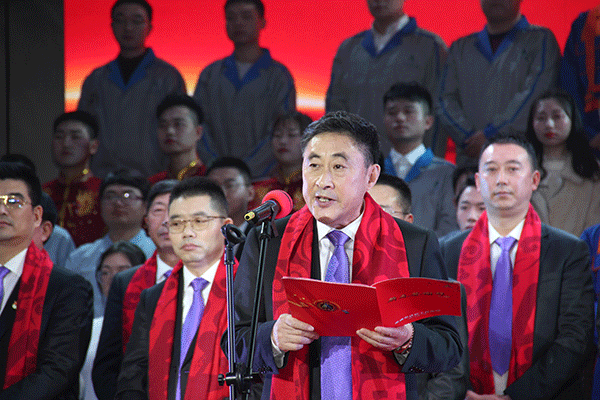 集團(tuán)高管們?cè)谂炫鹊摹拔液臀业淖鎳?guó)”聲中激情登場(chǎng),集團(tuán)董事長(zhǎng)馬和軍致辭答謝,他回顧了集團(tuán)一年來(lái)所取得的輝煌成績(jī),感謝社會(huì)各界及全體達(dá)欣人的努力,并對(duì)公司的未來(lái)之路描繪了新的發(fā)展藍(lán)圖。