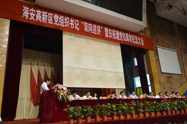 6月27日,海安高新區(qū)黨組織書記“雙向述評”暨慶祝建黨91周年大會在我縣海中體藝館舉行??h委常委、海安高新區(qū)黨工委書記張亞曦及全體黨政負(fù)責(zé)人、各局(辦)、各街、村(居)全體人員、各黨(總)支部書記、全體縣、鎮(zhèn)黨代表參加了會議。