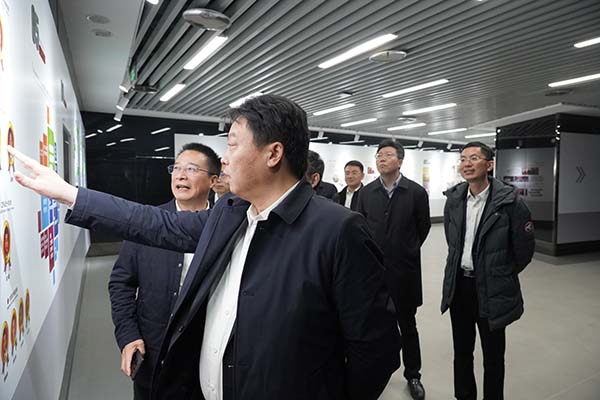 于立忠等領(lǐng)導(dǎo)參觀了企業(yè)展示中心、馬和軍勞模創(chuàng)新工作室黨支部,觀看了達(dá)欣集團(tuán)“紅旗鐵軍”專題片,了解了集團(tuán)在黨員管理工作方面“實(shí)施項(xiàng)目化管理,樹(shù)達(dá)欣黨建鐵軍品牌”的特色做法。在企業(yè)展示中心,于立忠系統(tǒng)了解了企業(yè)40多年來(lái)的發(fā)展歷程和集團(tuán)黨委開(kāi)展的四項(xiàng)融合、四微黨建、三項(xiàng)目標(biāo)的“四四三”黨建工作法,以及具有達(dá)欣特色的“工地黨旗美如畫”黨建工作。