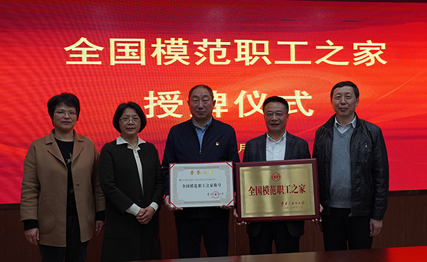 4月15日下午,南通市總工會二級調(diào)研員葉新春、基層工作部部長陸衛(wèi)彬、基層工作部主任科員豆煦等領(lǐng)導(dǎo),為達欣集團獲得“全國模范職工之家”授牌。海安市總工會黨組書記、副主席柴寶清,海安市總工會副主席(兼)、建筑工程管理局副局長徐培鴻,海安市總工會組織部(基層工作部)部長曹曉玲;集團黨委書記劉厚純,副總經(jīng)理、工會主席溫鶴華等出席授牌儀式,共同見證了這一光榮的時刻。