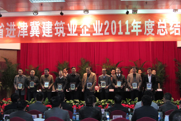 會(huì)議對(duì)2011年度江蘇省進(jìn)津、進(jìn)冀建筑施工企業(yè)優(yōu)秀項(xiàng)目部、優(yōu)秀建造師和先進(jìn)工作者進(jìn)行了表彰和頒獎(jiǎng),第四工程公司安居?xùn)|城B標(biāo)段項(xiàng)目部、第六工程公司唐山鳳城國際廣場項(xiàng)目部被授予“2011年度江蘇省進(jìn)津冀建筑業(yè)企業(yè)優(yōu)秀項(xiàng)目部”,第四、第六工程公司的張維琪、傅海榮、朱玉平、陳仁富4位同志被授予“2011年度江蘇省進(jìn)津冀建筑業(yè)企業(yè)優(yōu)秀建造師”,楊靜、江慶華等12名同志被授予“先進(jìn)工作者”。