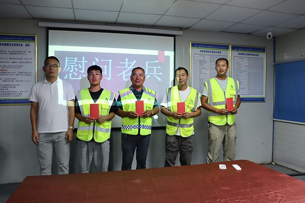 各項(xiàng)目經(jīng)理為14名退伍軍人發(fā)放了慰問(wèn)金,向他們表達(dá)感謝和祝福,希望他們珍惜軍人的榮譽(yù)和稱號(hào),退伍不褪色,退役不退志,繼續(xù)發(fā)揚(yáng)軍隊(duì)的革命傳統(tǒng)和優(yōu)良作風(fēng),在安全、生產(chǎn)、經(jīng)營(yíng)等標(biāo)準(zhǔn)化軍事化工作中發(fā)揮更加積極的作用,為達(dá)欣集團(tuán)高質(zhì)量發(fā)展做出新的貢獻(xiàn)。