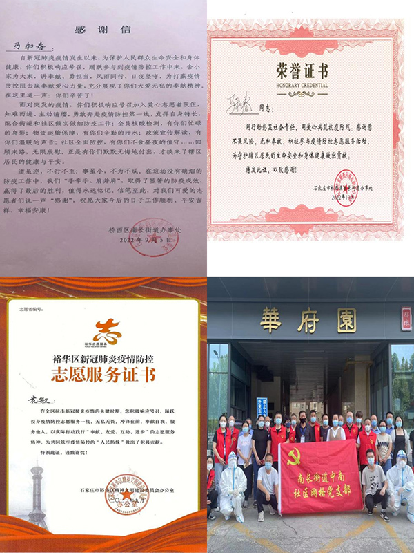 近日,第四工程公司陸續(xù)收到來自石家莊橋區(qū)西區(qū)南長街道辦事處、裕華區(qū)精神文明建設委員會對馬和春、花敏等同志的感謝信,對他們在石家莊市疫情期間,主動請纓加入志愿者隊伍,不懼風險、知難而進,為社區(qū)物資配送、核酸檢測、信息統(tǒng)計、環(huán)境消殺、防控措施宣傳等方面所做的貢獻和展現(xiàn)出的舍小家為大家的無私、擔當、奉獻精神表示感謝。