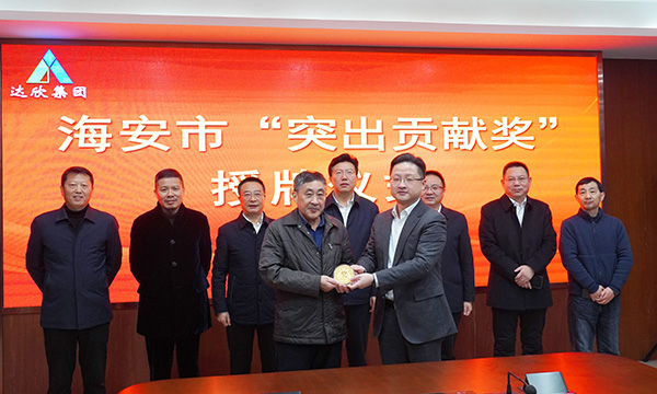 12月1日,海安高新區(qū)黨工委書記鄧加忠,黨工委副書記、管委會(huì)主任魯斌,黨工委副書記、科創(chuàng)園主任陸建銀,管委會(huì)副主任徐愛(ài)軍等領(lǐng)導(dǎo),為企業(yè)“2021年度入庫(kù)稅金超億元”,舉行“突出貢獻(xiàn)獎(jiǎng)”授牌儀式。這是繼去年集團(tuán)榮獲此項(xiàng)獎(jiǎng)牌后,再次受到當(dāng)?shù)卣挠忠淮渭为?jiǎng)鼓勵(lì)。集團(tuán)領(lǐng)導(dǎo)馬和軍、劉厚純等出席授牌儀式。