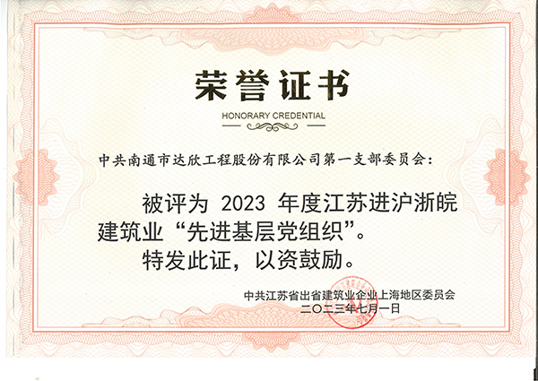 第一黨支部獲評(píng)江蘇進(jìn)滬浙皖建筑業(yè)基層黨組織榮譽(yù)