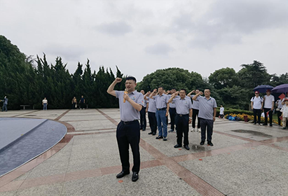 在抗日英雄群雕廣場(chǎng),全體黨員懷著對(duì)革命烈士崇高的敬意,向革命英雄敬獻(xiàn)花籃,鞠躬悼念中銘記歷史。支部書(shū)記倪志榮帶領(lǐng)全體黨員重溫入黨誓詞,面對(duì)鮮紅的黨旗和莊嚴(yán)的誓詞,共同高舉右拳,莊嚴(yán)宣誓。