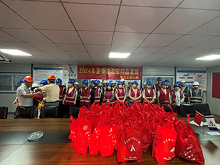 6月29日下午,第三工程公司在江城首邑項目部舉行夏季高溫慰問活動。第三工程公司副經(jīng)理吉祥和工會負責人丁連勇親自為全體員工送上了防暑慰問品,表達了公司對員工的關(guān)心和關(guān)愛。