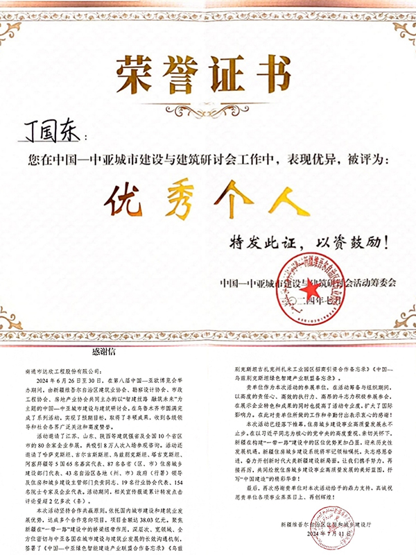 近日,公司收到一封新疆維吾爾自治區(qū)住房和城鄉(xiāng)建設廳發(fā)來的感謝信,信中對我公司在烏魯木齊召開的“智建絲路 融筑未來”為主題的中國——中亞城市建設與建筑研討會中,所做的工作和辛勤付出表示衷心的感謝。公司作為本次活動的江蘇省參展單位之一,在活動籌備期間,以高度的責任心、高效的執(zhí)行力、高昂的斗志積極參展參會,在展示企業(yè)特色和成果的同時也提高了活動專業(yè)度,擴大了國際影響力。