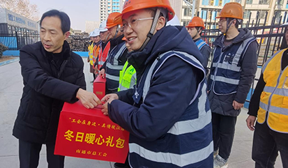 1月13日,南通市總工會黨組成員、經(jīng)審會主任周正秋,南通市總工會權(quán)益保障部部長趙周恒一行,來到達(dá)欣集團(tuán)南通R23005地塊項(xiàng)目建設(shè)現(xiàn)場,開展“工會在身邊 真情暖江海”2025年春節(jié)送溫暖活動(dòng),為奮戰(zhàn)在一線的工作人員送上冬日暖心禮包和新春的祝福與慰問。