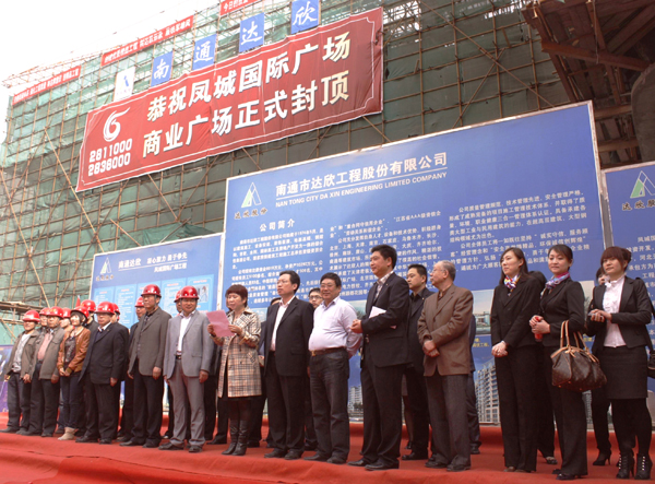 我司承建的唐山鳳城國際廣場(chǎng)工程,經(jīng)過項(xiàng)目部全體員工的艱苦努力,克服樓層高、體量大等種種技術(shù)難題和資金及周轉(zhuǎn)材料投入大、施工人員緊缺的重重困難,抓安全、保質(zhì)量、趕時(shí)間、拼速度,商業(yè)裙樓的主體結(jié)構(gòu)如期封頂,這標(biāo)志著鳳城國際廣場(chǎng)工程的施工取得了階段性的勝利。