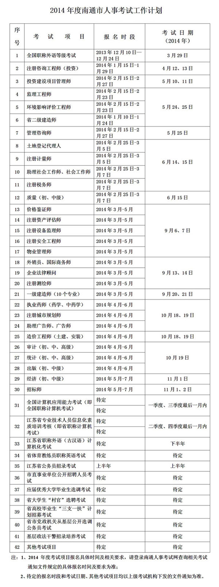2014年度南通市人事考試工作計(jì)劃