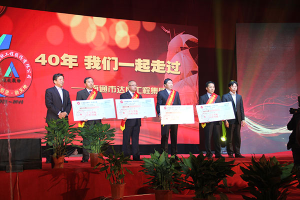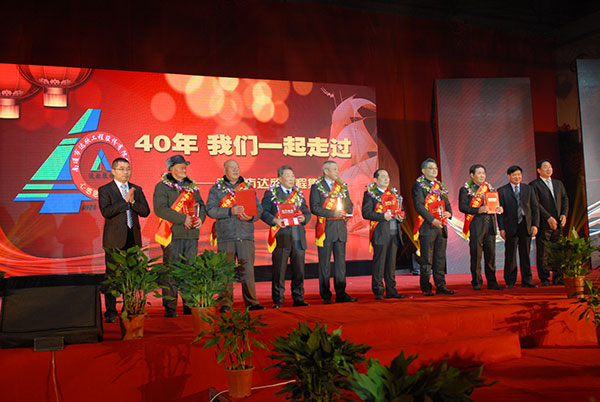 慶典活動(dòng)在澎湃的“達(dá)欣40年”影片聲中激情開(kāi)場(chǎng),圍繞“40年 我們一起走過(guò)”為慶典主線,以“歲月留痕、創(chuàng)業(yè)年代、追逐夢(mèng)想”為三個(gè)篇章,通過(guò)公司代表人物視頻講述、通過(guò)節(jié)目演繹,全面回顧了企業(yè)的創(chuàng)業(yè)史、發(fā)展史、改革史,并對(duì)達(dá)欣四十年發(fā)展的卓越貢獻(xiàn)代表、杰出貢獻(xiàn)代表、魯班創(chuàng)優(yōu)團(tuán)隊(duì)、質(zhì)量年特別貢獻(xiàn)代表、全國(guó)AAA級(jí)安全文明標(biāo)準(zhǔn)化工地進(jìn)行了頒獎(jiǎng)。