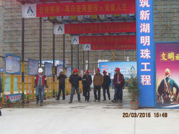 施工現(xiàn)場,項目經(jīng)理崔益明就工程概況、文明工地創(chuàng)建采取的措施、質(zhì)量管理方面新工藝、新材料革新以及采用樣板引路所取得的成效向來訪嘉賓作了詳細(xì)介紹??疾旒钨e們一行先后參觀了11#、12#地塊現(xiàn)場文明施工、樣板展示區(qū)、結(jié)構(gòu)實體工程,對該項目部施工生產(chǎn)、安全質(zhì)量、現(xiàn)場文明等方面給予了高度評價。蘇州新湖置業(yè)王總表示希望在蘇州區(qū)域保持良好持久合作的基礎(chǔ)上,將積極推薦我司參與新湖中寶其他區(qū)域公司的項目合作。