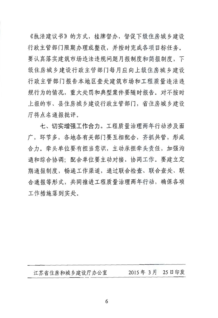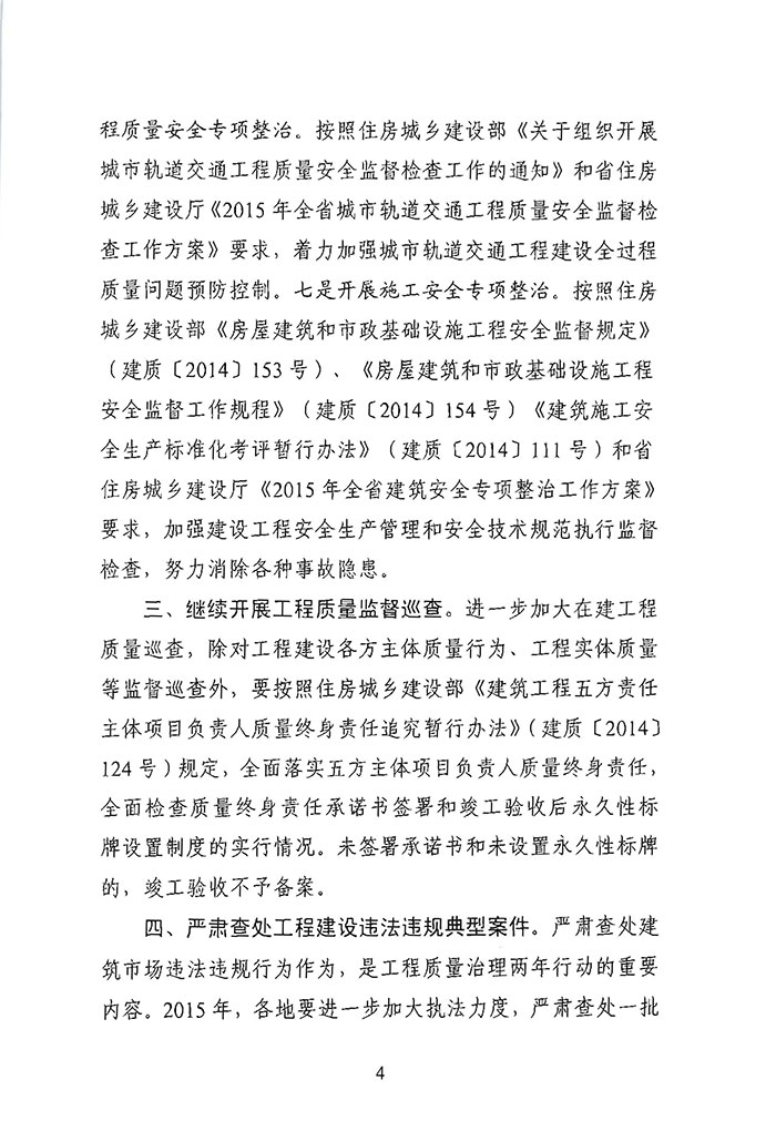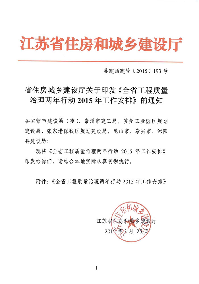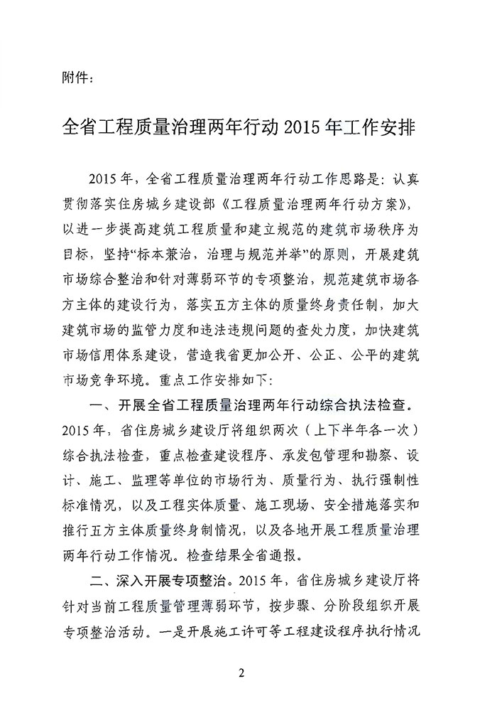 省住房城鄉(xiāng)建設廳關于印發(fā)《全省工程質量治理兩年行動2015年工作安排》的通知