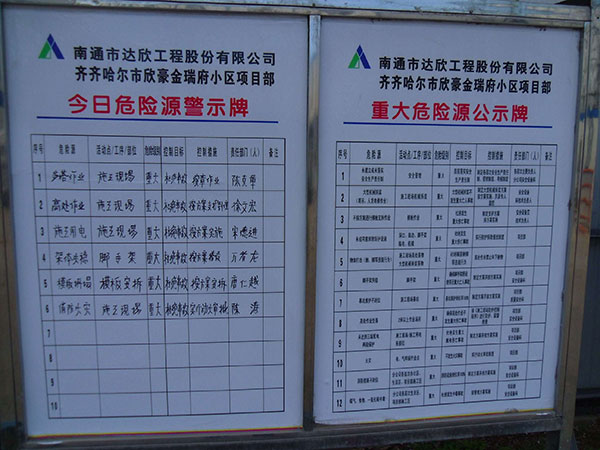 加強宣傳,項目部堅持每日對職工進行班組教育和日常班前教育,讓職工每日班前都能明確當日的工作任務、操作規(guī)程和工作環(huán)境,提高個人的安全防范意識,確保安全生產;在每棟樓懸掛“安全生產月”活動的宣傳標語。加強警示,在工地大門口設置了重大危險源公示牌,在每棟樓的入口處公示當日本樓棟號的危險源,時刻提醒職工注意作業(yè)期間身邊的危險源。加強檢查,認真組織對臨邊、洞口防護、漏電保護裝置進行重點檢查,及時消除安全隱患。同時對各項目部40歲以上的員工進行一次拉網(wǎng)式血壓檢查。對于高血壓的特殊工種,要求其休息調養(yǎng),待血壓正常后方可繼續(xù)上崗。