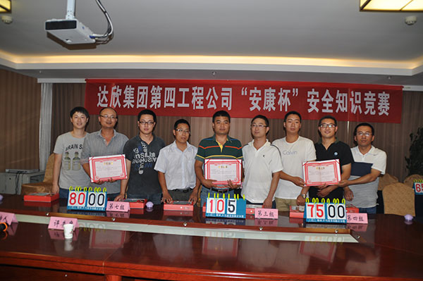 各項目部在建筑物上懸掛安全生產(chǎn)宣傳標語24條幅;組織廣大職工觀看建筑施工中的事故案例,結(jié)合施工過程中的實際情況進行分析點評;對全體職工進行了血壓檢測;舉行了“安全生產(chǎn)月”主題簽名活動。工程公司于6月8、9日在留村項目部組織所有在崗管理人員進行了安全知識培訓(xùn)。6月22日工程公司舉行了“安康杯”安全知識競賽,24名選手分8組參賽。經(jīng)過必答題、搶答題、附加題3個環(huán)節(jié)的比拼,最終眾美綠都項目部以領(lǐng)先笫二名25分的優(yōu)勢獲得冠軍,拉斐小鎮(zhèn)、留村莊園A區(qū)分獲二、三名。通過以上活動的開展,進一步提高了廣大職工的安全生產(chǎn)知識和安全意識,確保安全生產(chǎn)。