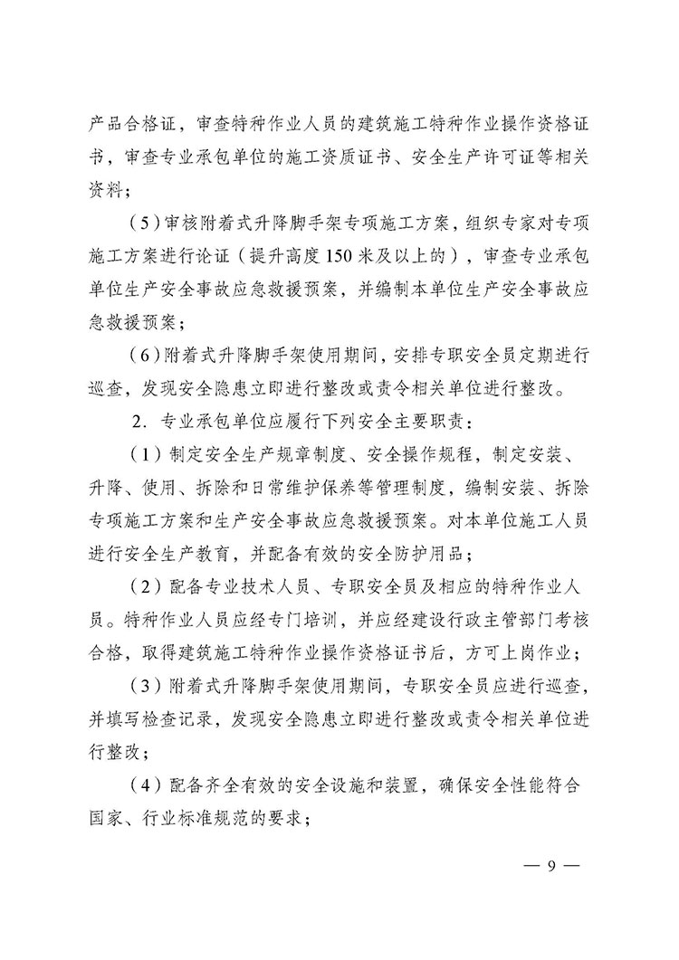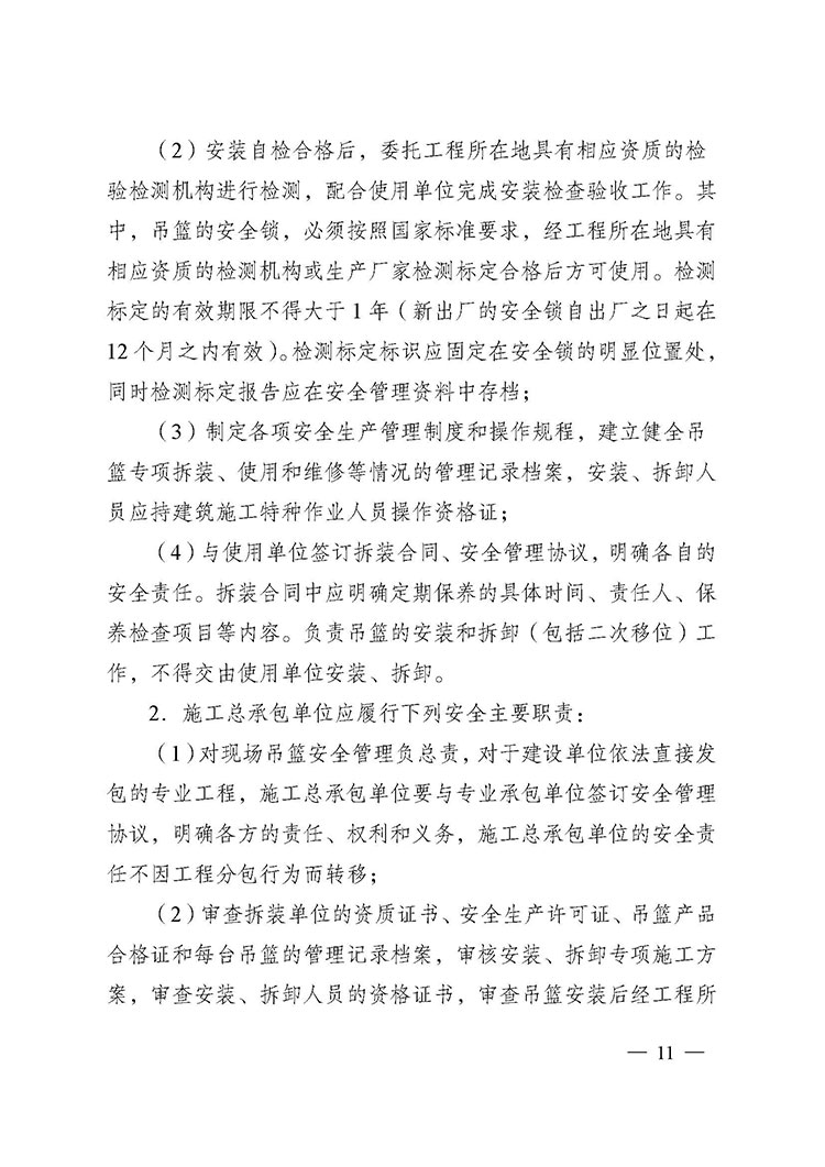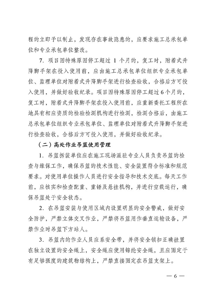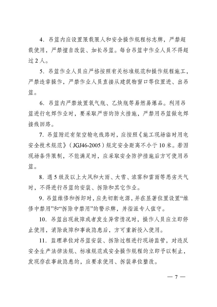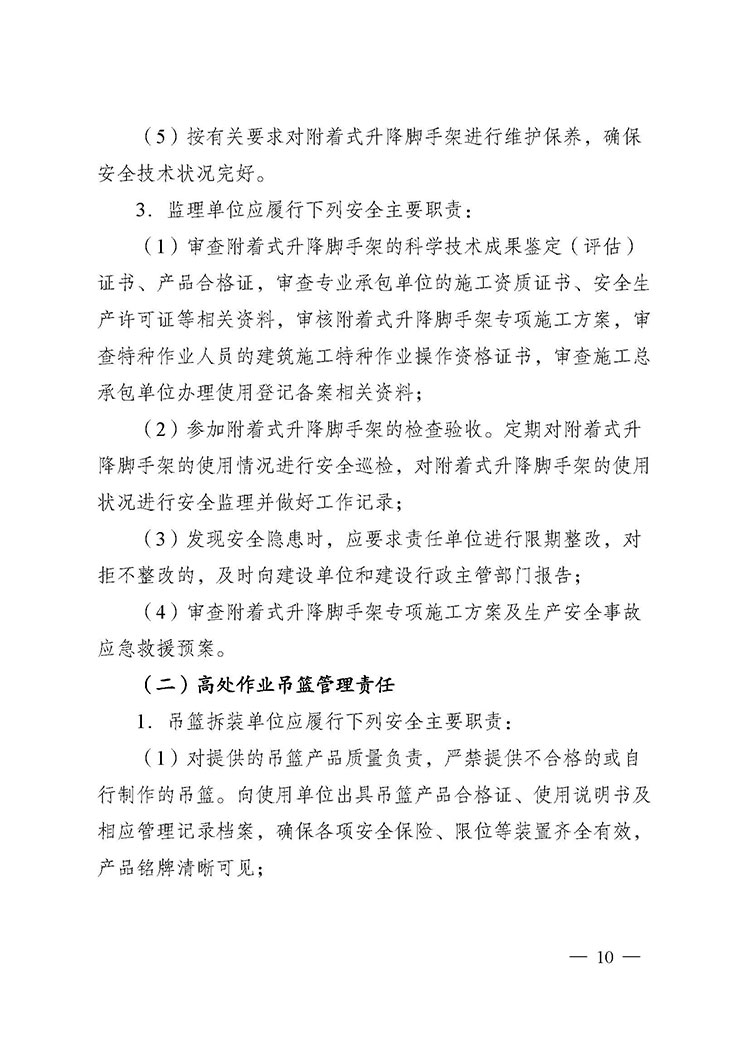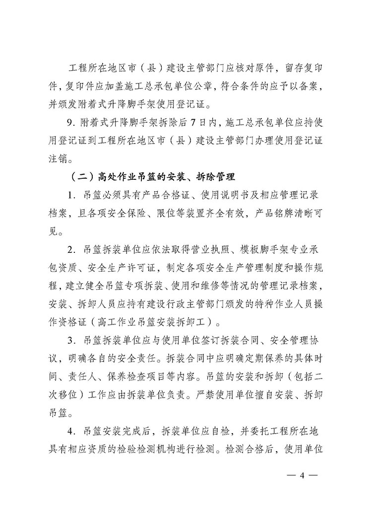 關(guān)于進(jìn)一步加強(qiáng)附著式升降腳手架和高處作業(yè)吊籃安全管理的通知