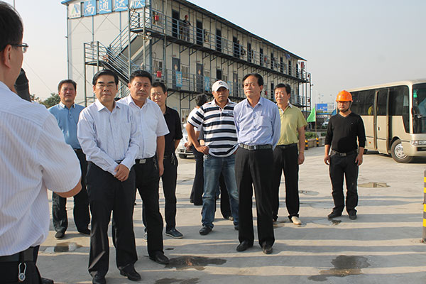 丁市長等領(lǐng)導(dǎo)一行深入現(xiàn)場,在聽取了施工現(xiàn)場各項工作開展情況的匯報后,對施工現(xiàn)場進度、質(zhì)量、安全管理、文明施工、環(huán)境治理工作表示滿意,并提出了四點要求:一是要有政治意識,確保安全、質(zhì)量,建好民生工程;二是要提高整體意識,團結(jié)一致,加強協(xié)作;三是要提高管理水平,科學(xué)安排組織施工,提高工作效率;四是要加快推進施工進度,確保進度計劃受控。項目部總指揮張維琪表示:堅決把謝家莊返遷區(qū)工程項目建設(shè)好,確保向業(yè)主交一份滿意的答卷。